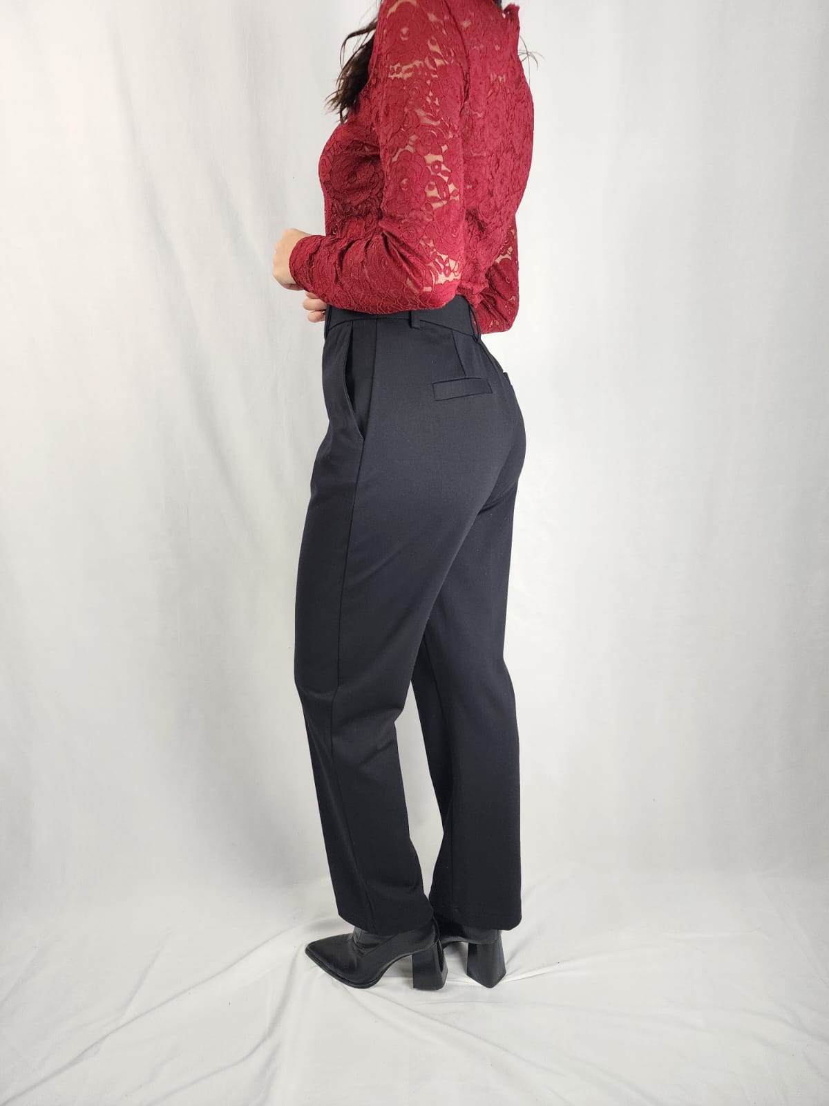 Confecionada em tecido de alta qualidade, com toque suave e ligeira elasticidade, esta calça apresenta um corte reto que alonga a silhueta e proporciona um caimento impecável. Bolsos laterais funcionais e o acabamento cuidado nas costuras evidenciam a atenção aos detalhes.