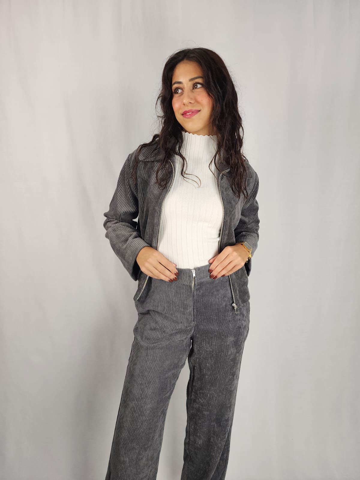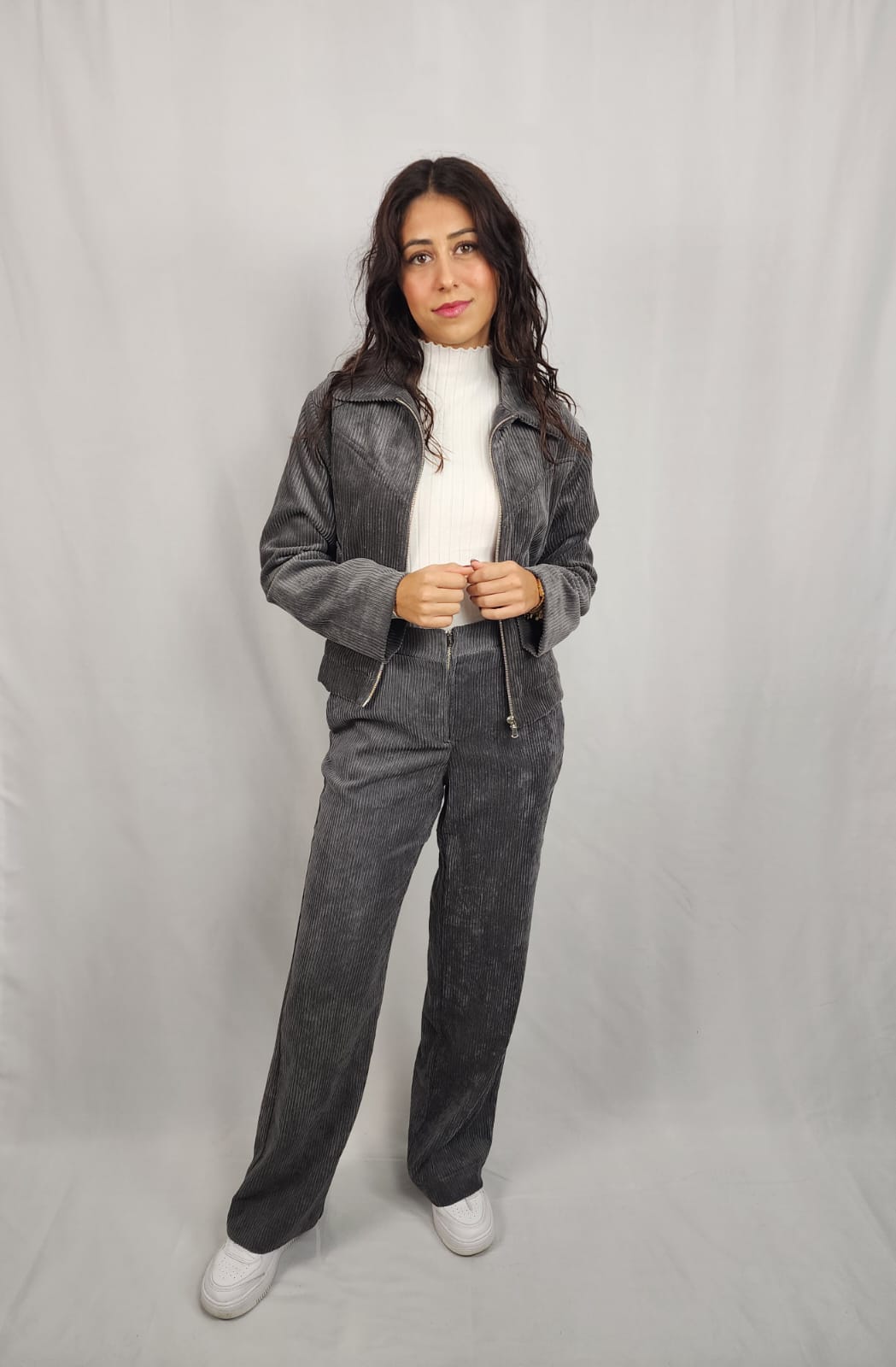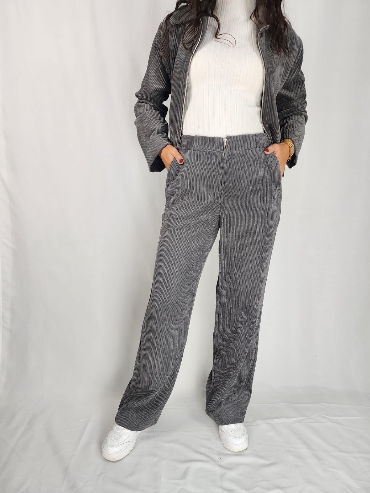 A calça de bombazine de alta qualidade, com textura canelada e toque macio. O corte reto proporciona um caimento impecável, alongando a silhueta e garantindo conforto nos movimentos.