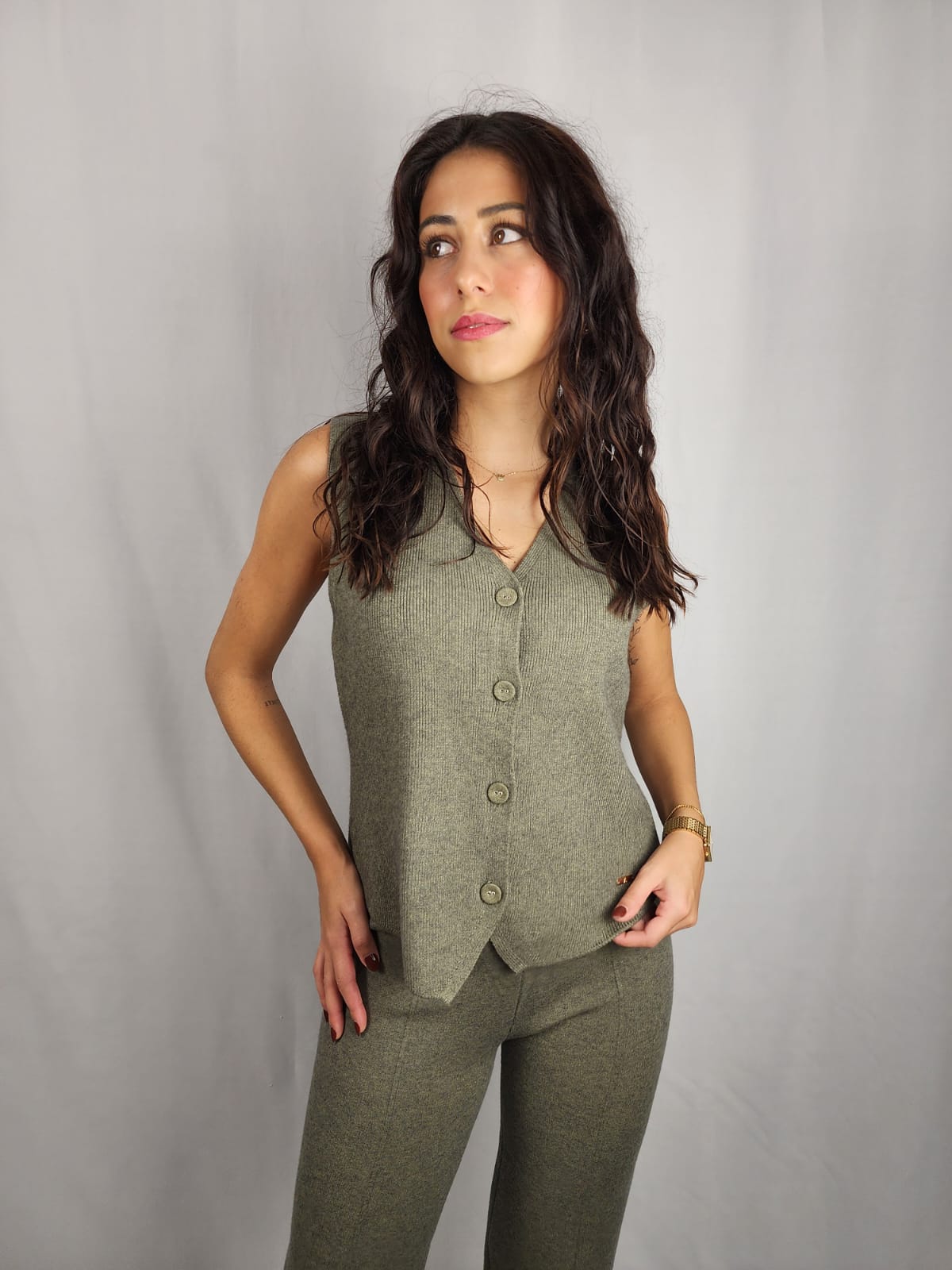 Este colete de malha com botões frontais é a peça ideal para criar sobreposições elegantes e cheias de personalidade. Confeccionado em malha macia e confortável, traz uma modelagem versátil que se adapta a diferentes estilos. O fechamento frontal com botões adiciona charme e praticidade, permitindo usá-lo aberto ou fechado, conforme o look.