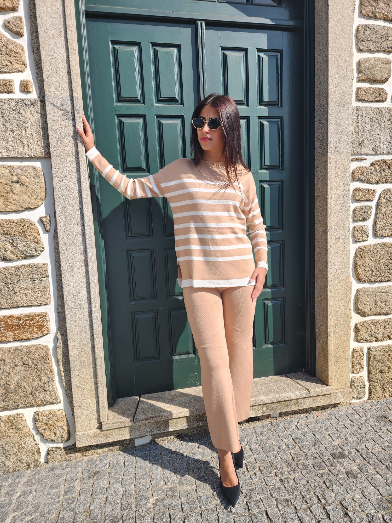 Este conjunto de malha é a escolha ideal para quem procura praticidade sem abrir mão da elegância. Com um toque suave e um caimento impecável, ele oferece máximo conforto para o dia a dia, mantendo um visual moderno e sofisticado. Perfeito para usar junto ou separado.
